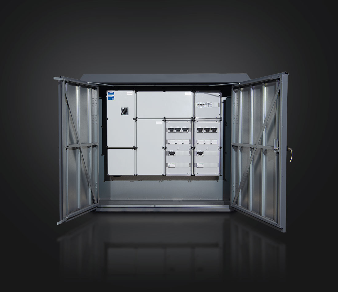 Tavlerne er udført i isolerstofkapslet (og dobbeltisoleret) tavlesystem og er klargjort til installationer udført iht. DS/HD 60364. De kan leveres i tilhørende komponentskab inkl. sokkel for nedgravning. Tavlerne er fremstillet i høj kvalitet og alt gruppemateriel er opmærket med ”maks. A”. Derudover leveres tavlerne med målerfelt og felt for strømtransformere (inkluderet) iht. fællesregulativet.