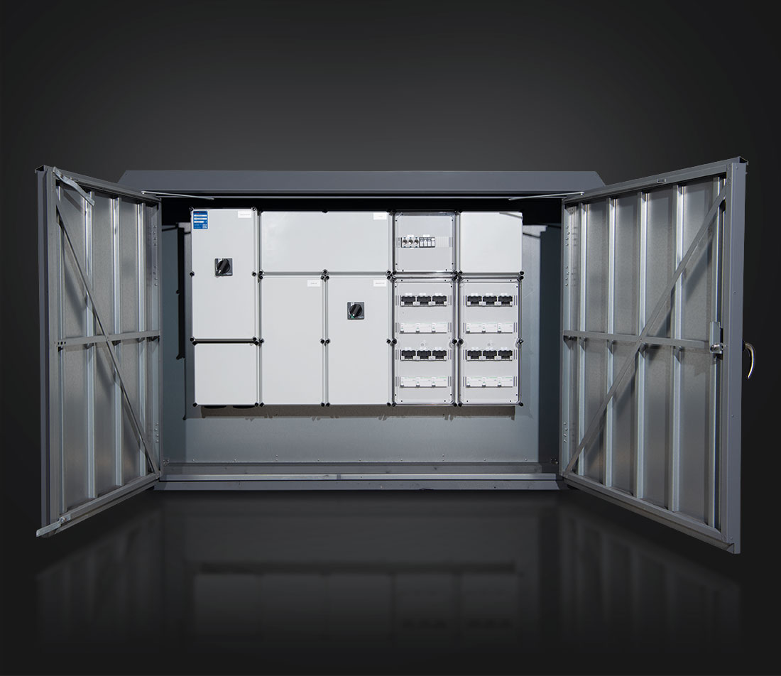Tavlerne er udført i isolerstofkapslet (og dobbeltisoleret) tavlesystem og er klargjort til installationer udført iht. DS/HD 60364. De kan leveres i tilhørende komponentskab inkl. sokkel for nedgravning. Tavlerne er fremstillet i høj kvalitet og alt gruppemateriel er opmærket med ”maks. A”. Derudover leveres tavlerne med målerfelt og felt for strømtransformere (inkluderet) iht. fællesregulativet.