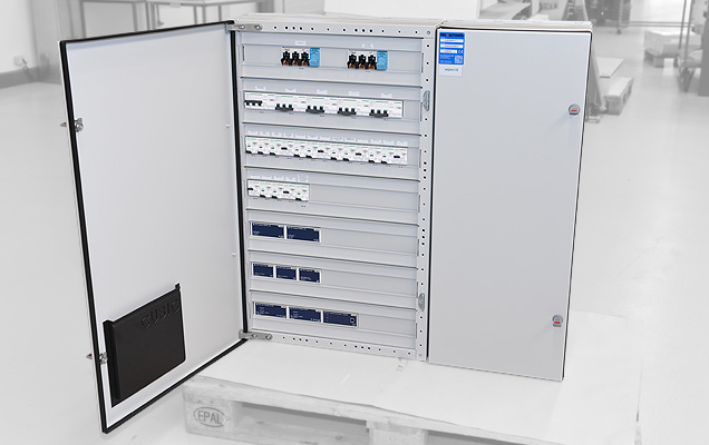 De leverede boligtavler er specialproducerede og ekstraordinært store for at opfylde de høje krav til byggeriet. Målet har været at skabe en yderst funktionel og fremtidssikret løsning til styring af el i boligerne. Salgsingeniør John Olsen fortæller: